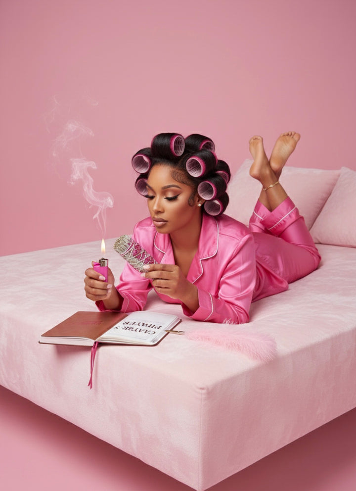 The Rose Quartz add a blessing of love and happiness as the sage clear, cleanses and purifies negative energy and thoughts. The rose quartz is the baddie stone of all times representing love within yourself, friendships, family and inner healing.ย