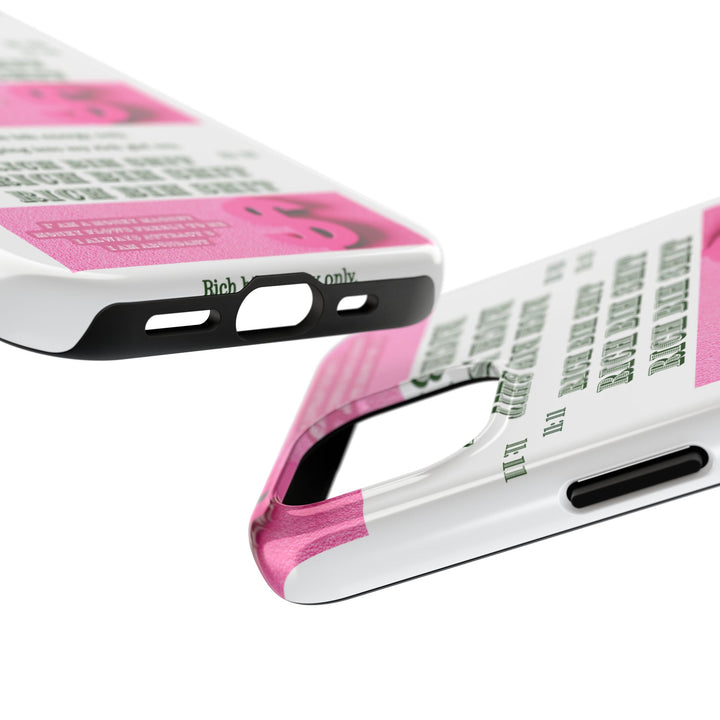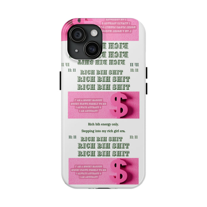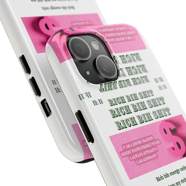 Introducing our vibrant Rich Bihh phone case, where style meets resilience. This 11:11 eye-catching accessory showcases high vibrational intentions on financially manifesting while providing ultimate protection for your device. If you catch the angelic number 11:11 this is perfect for you! Also making it perfect for those who love modern designs with a touch of glamour, this phone case complements a manifesting lifestyle. Ideal for students, professionals, or anyone looking to be intentional with financial abundance and success. This case is not just a gadget; it’s an expression of who you are, suitable for gifting during birthdays, holidays, or just as a treat for yourself. Whether you’re heading to a party or out for a casual day, this case will keep your phone safe and while promoting high intentions for manifesting financial growth. This is perfect if you love the ANGELIC NUMBERS of 11:11.