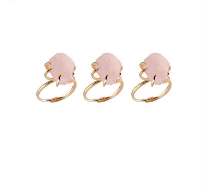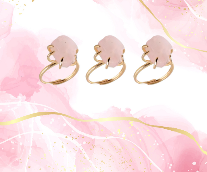 This is a rose quartz crystal ring.